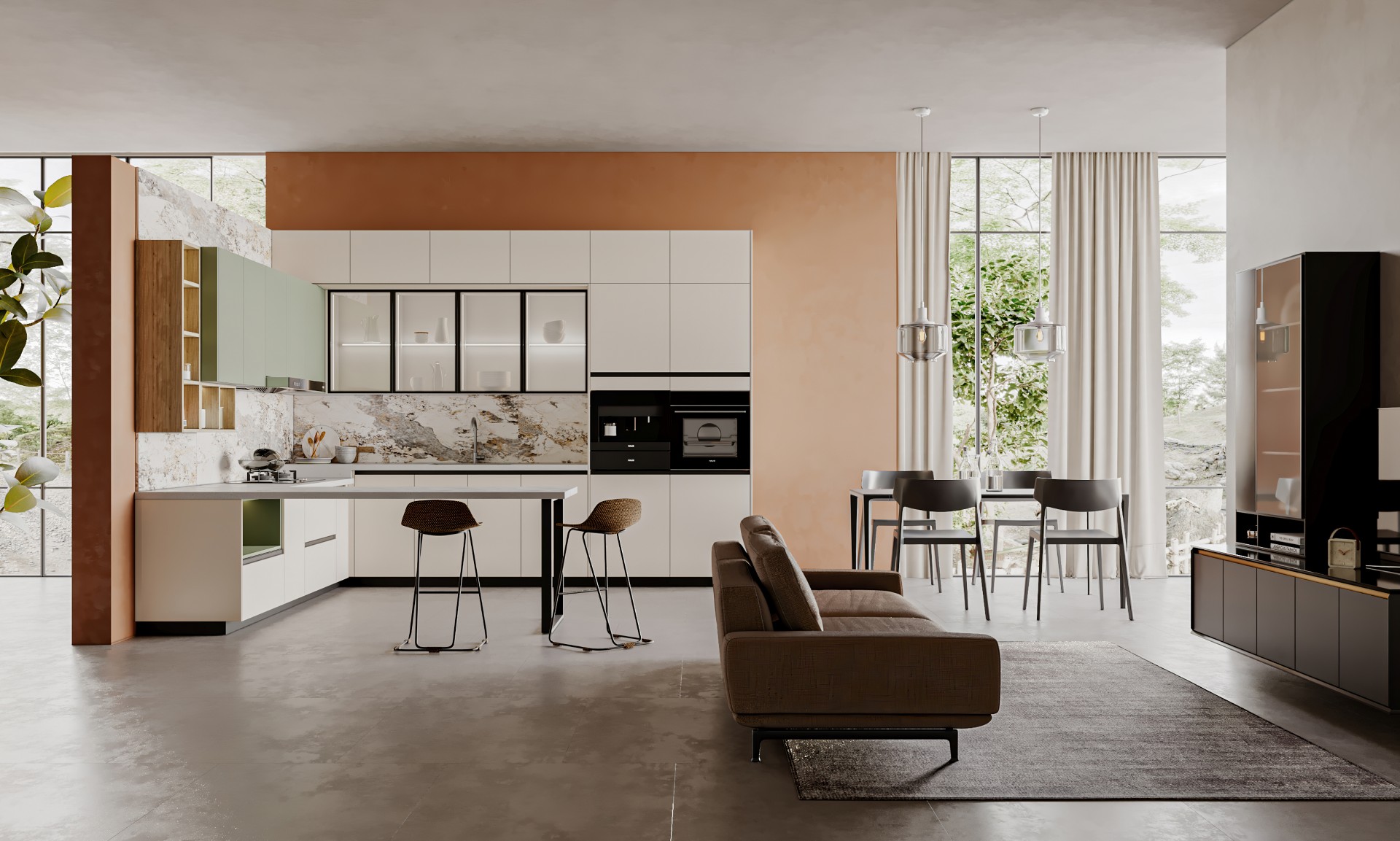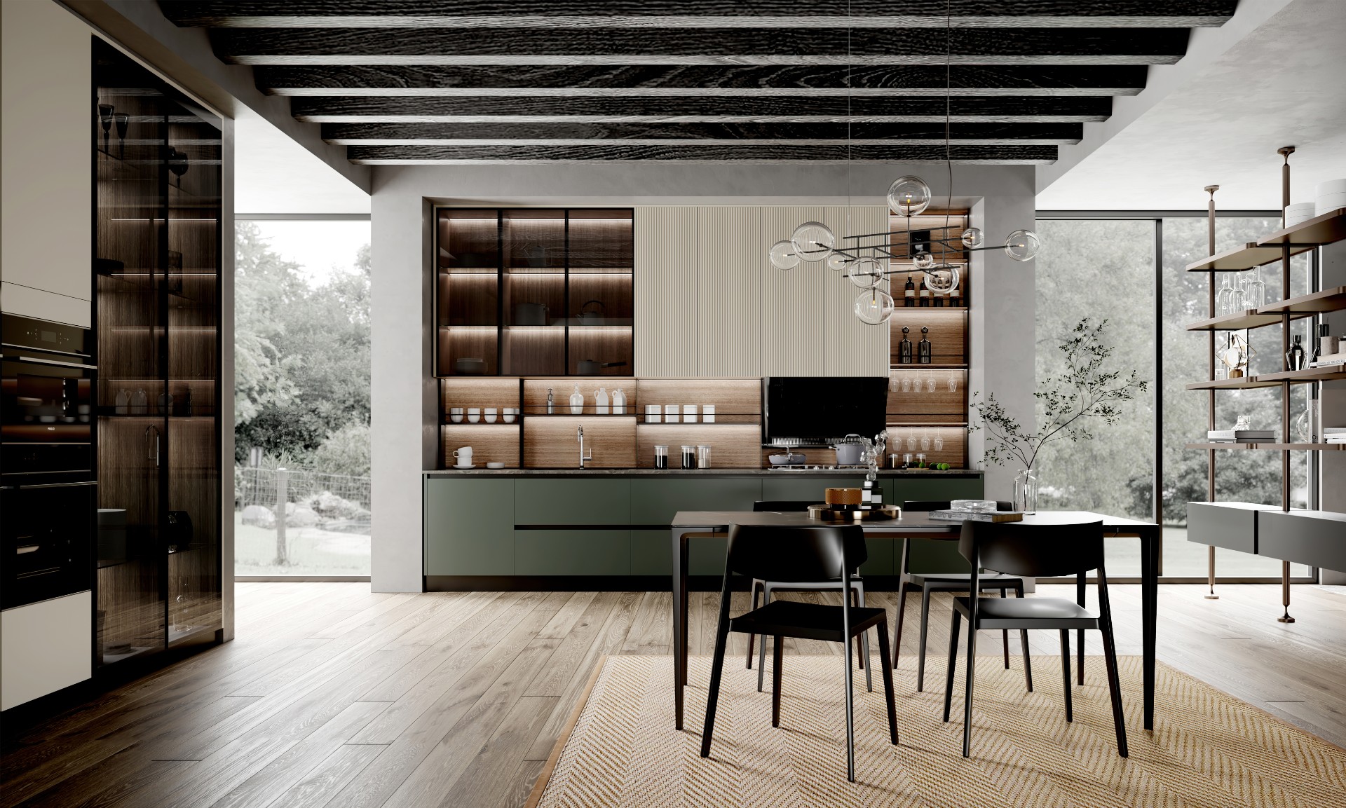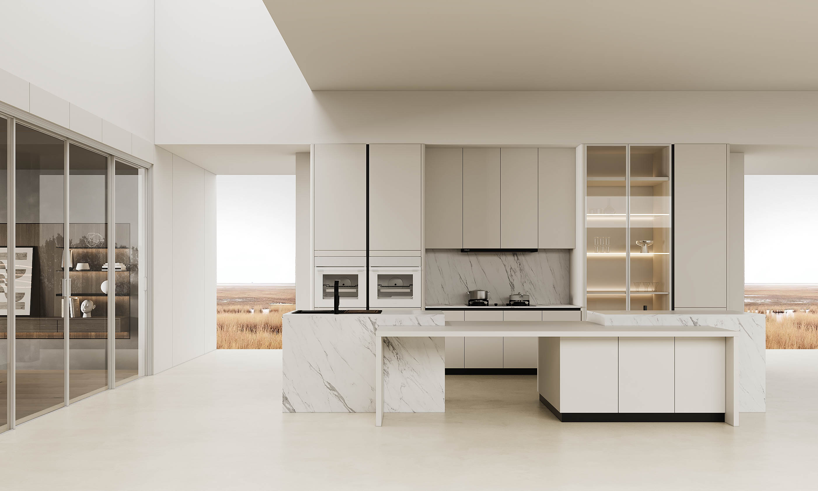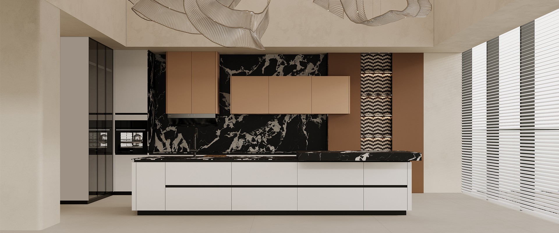通過米蘭廚柜量體裁柜,定制出適合主廚下廚的烹飪區和洗滌區的舒適高度。